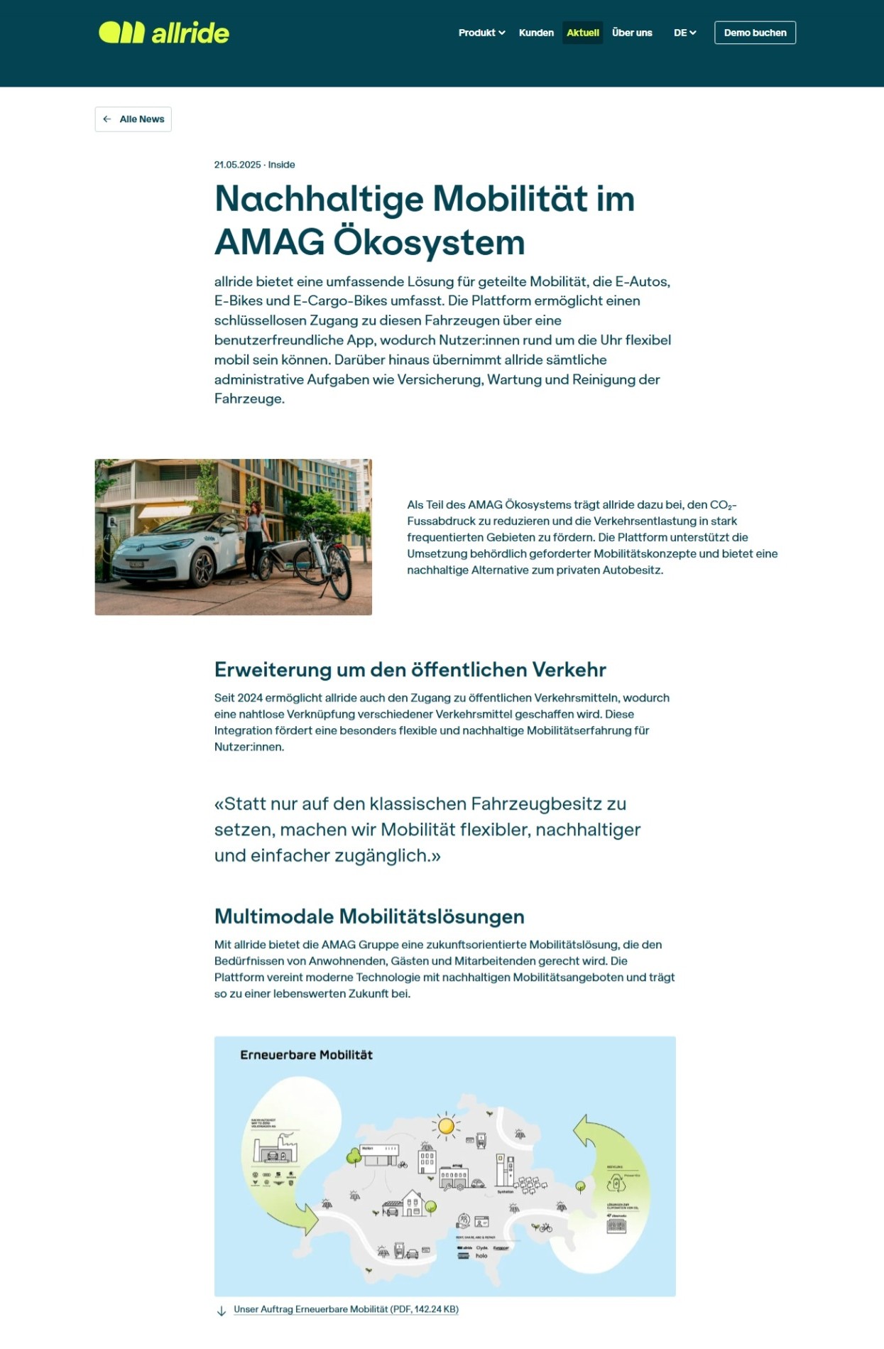 Von der Konzeption der Systemarchitektur über die Implementierung eines flexiblen CMS bis hin zur Integration der App-Anbindung lag der Fokus auf Wartbarkeit, Performance und Erweiterbarkeit. Ziel war es, eine robuste technische Basis zu schaffen, die unterschiedliche Mobilitätsangebote zuverlässig abbildet und langfristig weiterentwickelt werden kann.